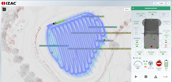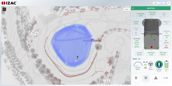 道路清掃車国内シェア90%を誇る豊和工業の高い清掃技術と、ROBO-HI株式会社の自動運転OS「IZAC」を融合し、カメラやLiDARなどの先進センサーを搭載した「EVロボスイーパー」は、無人での清掃作業により人手不足の解消と清掃業務の効率化を実現する業務用屋外清掃ロボットです。
