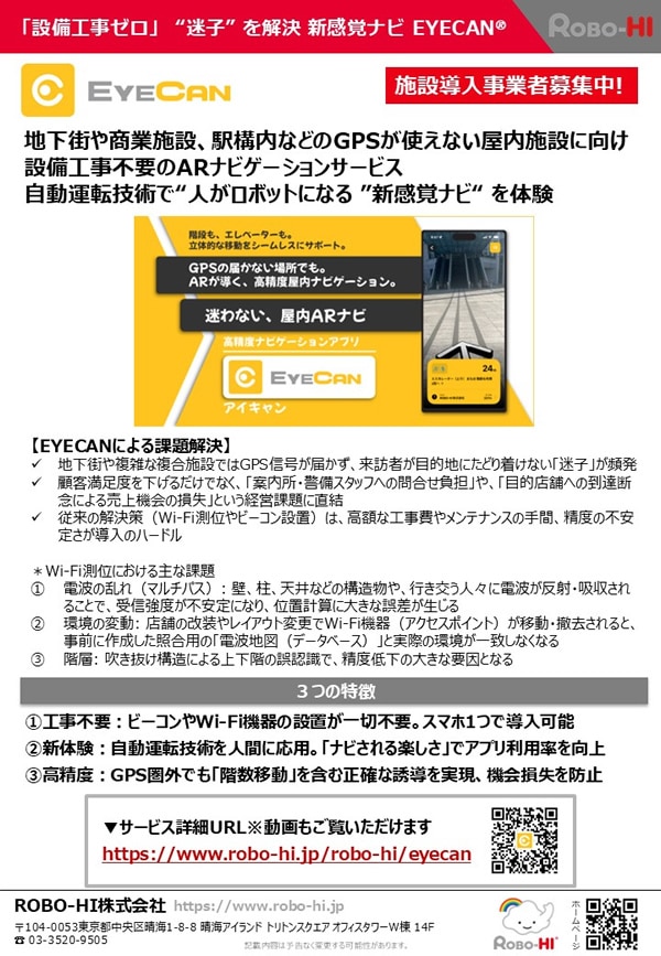 カタログダウンロード GPS不要屋内案内アプリ EYECAN