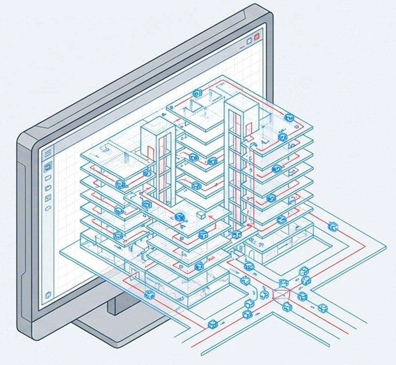 BIMから点群データ、絶対座標への変換(特許技術)。バラバラなロボットの座標系をROBO-HIが一つに統合。