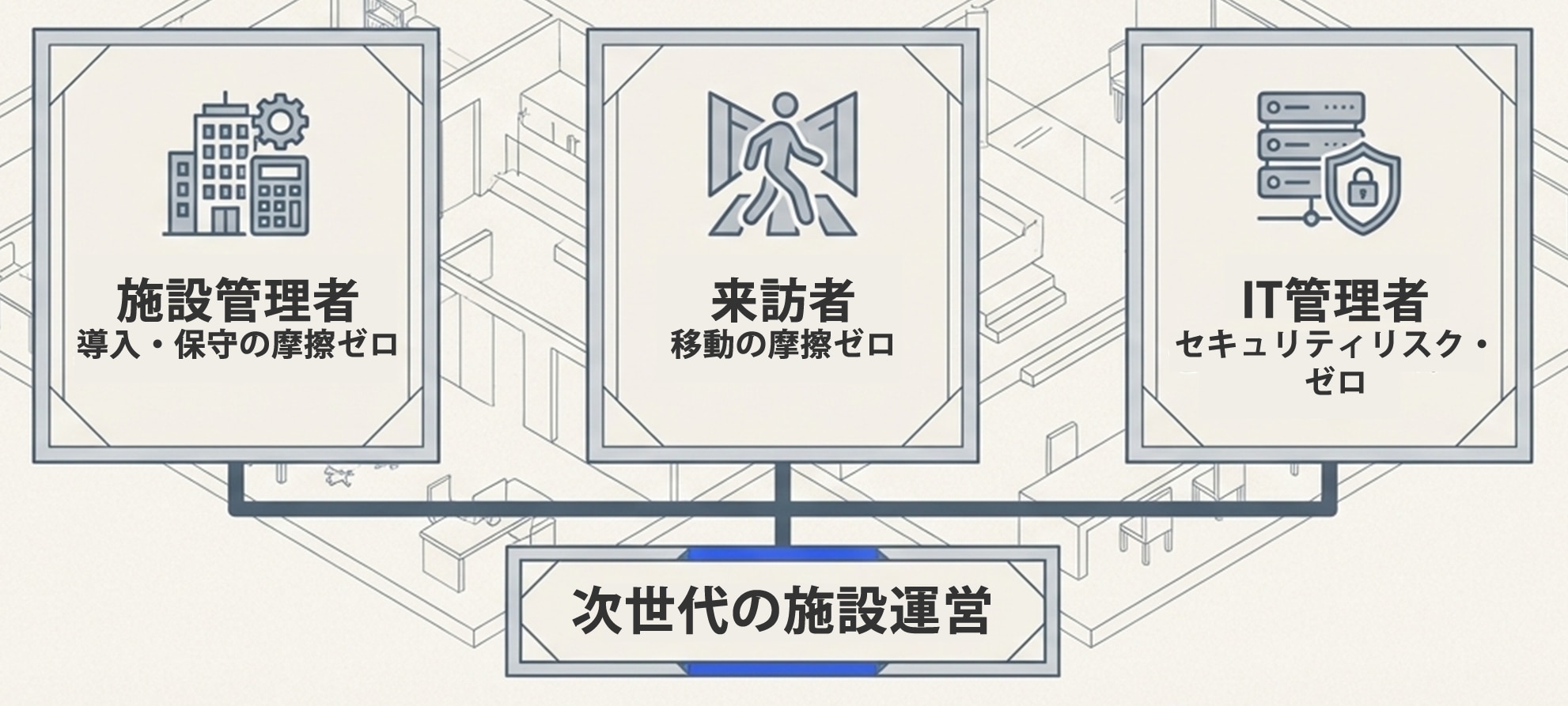 初めての訪問者でも、目的の会議室や検査室へスムーズに誘導。